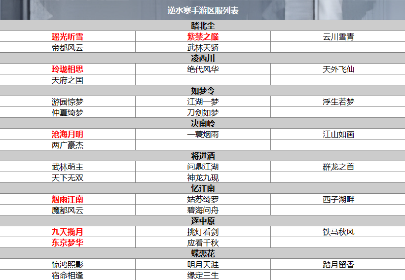 以上就是关于逆水寒手游区服介绍的全部内容了,希望能为各位玩家们带来帮助,想要了解更多游戏攻略及资讯请持续关注多特游戏。以上就是手游巴士为您提供《逆水寒手游区服有哪些 逆水寒手游区服介绍》的详细内容,更多精彩内容请继续阅读上一篇《光遇6.28免费魔法有什么 光遇6月28日免费魔法收集攻略》2023-06-28 《保卫萝卜4》周赛6.27攻略