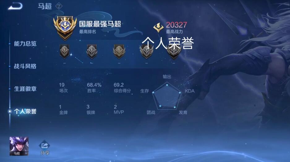 4.在英雄之路里点击个人荣誉,就可以分享了