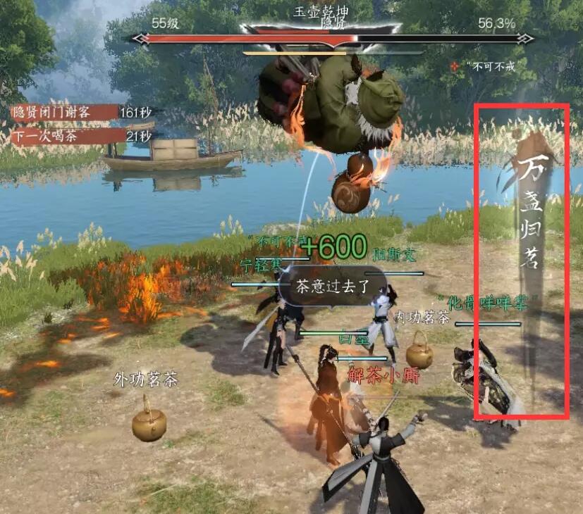 主要的是喝茶,注意倒计时下方的提示,出现茶的时候除了铁衣以外都去喝近战喝外功茶,远程喝内功茶。