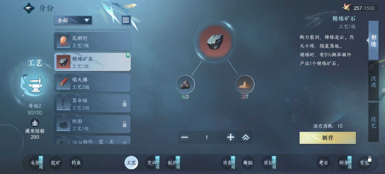 挖出来的矿可以在工艺身份这边熔炼成精炼矿石