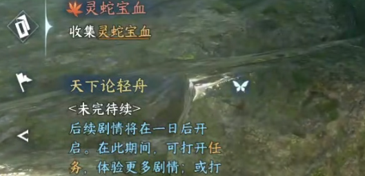 2、任务开始之后,我们会碰到一条蛇,然后就是一大段的剧情,我们需要等待剧情结束之后我们收集灵蛇宝血即可;