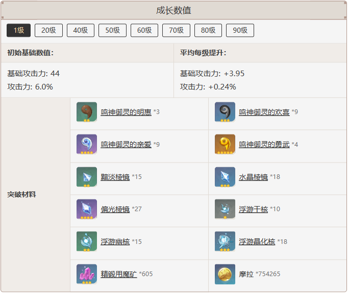 成长数值一览