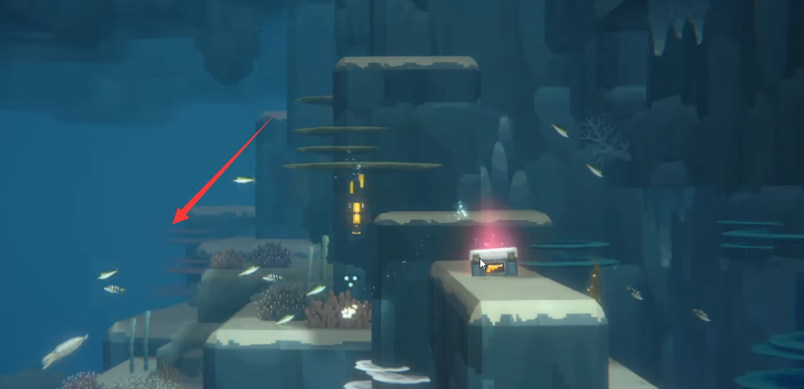 3、在图示岔路往左走。(如果是第一次来这里有一个箱子,很好认)