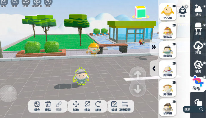 生物设置和剧情编辑这两大全新功能的组合设计,大大方便了喜爱制作剧情的工匠蛋们!告别以往制作NPC与调试运动器的繁琐步骤,简化制作程序,解放蛋仔们的双手,工匠蛋们可大展身手、肆意发挥!