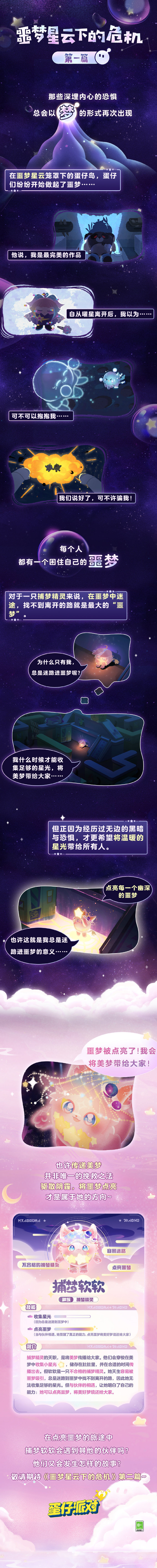 但在成为蛋仔们的美梦守护使之前,他们也都曾历经了许多困难与艰险。守护梦境的故事,要从一只捕梦精灵——捕梦软软开始讲起。