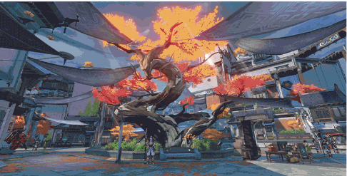 行医市集是丹鼎司中药商往来的市集。千百年过去,橙色的枫叶如火般摇曳,枝丫也如龙首一般屹立不倒。