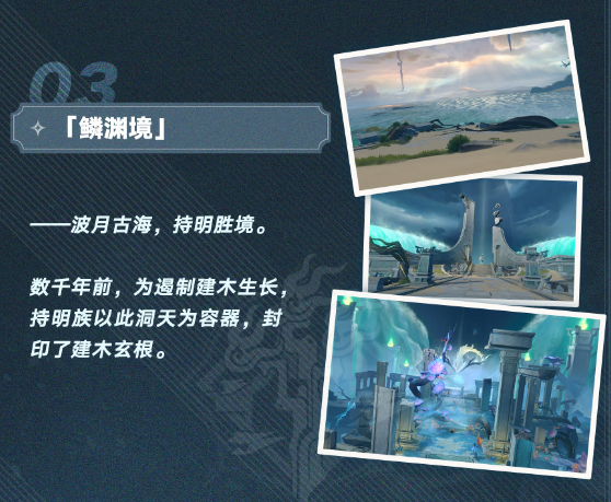 鳞渊境是持明族的故乡,数千年前,某位龙尊在此引导古海之水掩覆玄根。自此罗浮持明族便身负守望建木之责。
