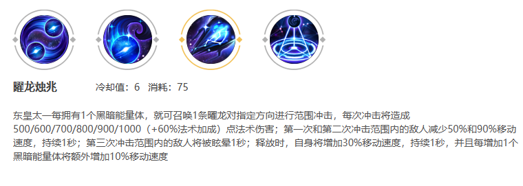 以上就是关于王者荣耀东皇太一介绍的全部内容了,希望能为各位玩家们带来帮助,想要了解更多游戏攻略及资讯请持续关注多特游戏。