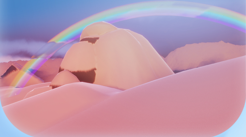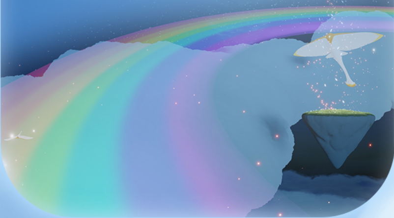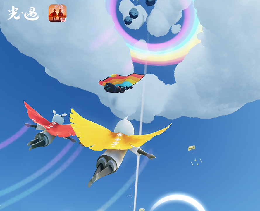 缤纷飞行日期间,先祖们结伴在遇境庆贺节日。一抹彩虹将出现在遇境上空,贴近彩虹即可收获烛火,并随机获得彩色尾迹。每个整点会出现双彩虹,每次持续15分钟。