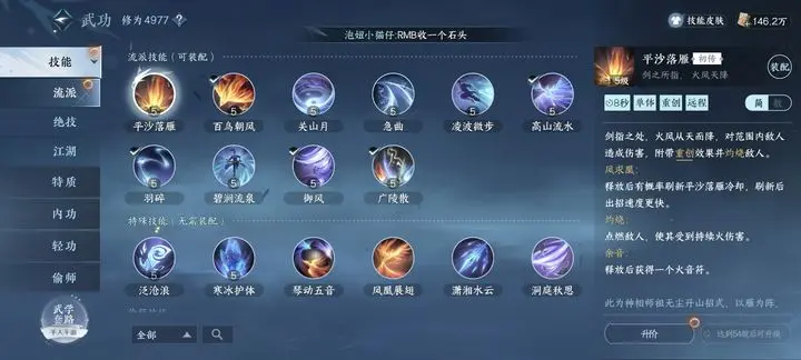 高山流水+羽碎+急曲+泛沧浪+潇湘水云+御风+寒冰护体+凌波微步