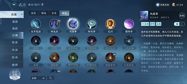 2、解锁之后,玩家可以在武功的江湖趣味技能页面找到它。
