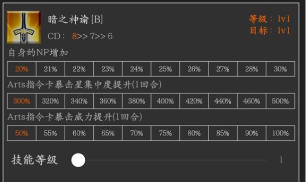 二技能 暗之神谕 增加自身Np 20-30,蓝卡暴击威力和暴击星集中度提升。