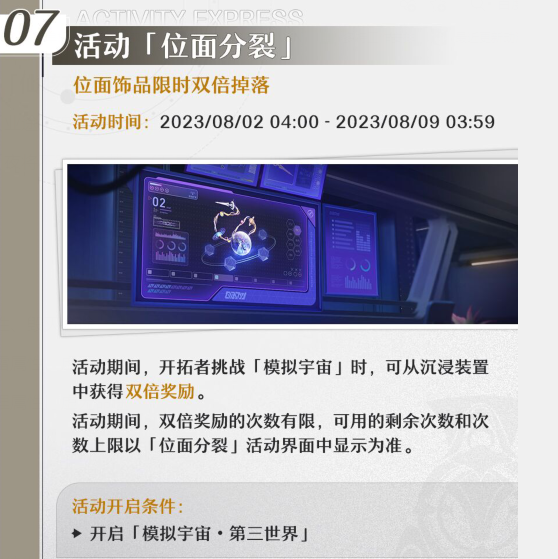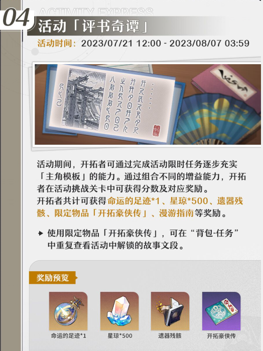 以上就是崩坏星穹铁道仙骸有终活动一览的全部内容了,希望玩家可以顺利的知道有什么活动,更多精彩内容请关注多特游戏。