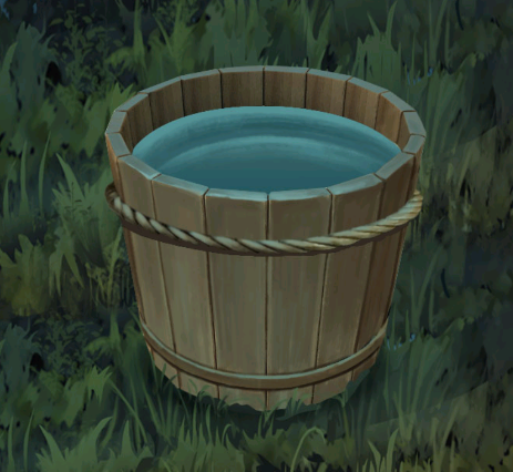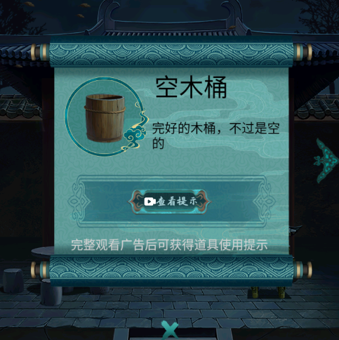 15、离开房间,回到大殿前,在左侧的桌上用木板和绳子获得一个空木桶。