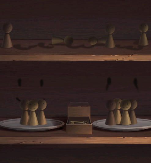13、点击放满木偶的柜子,将左侧放3个,右侧放满4个,获得钥匙。