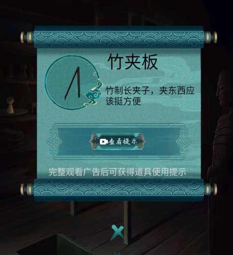 14、使用钥匙打开里侧的柜子,获得牛雕像,在柜子边上还靠着一个竹夹板,别忘了拿。