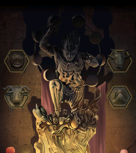 7、点击雕像,有四个放雕像的圆盘,猴子是第一个,当然地上的地毯也能看到具体的摆放。