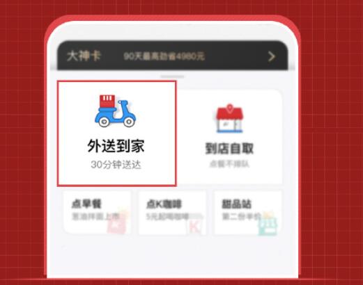 进入肯德基+微信小程序点击【外送到家】