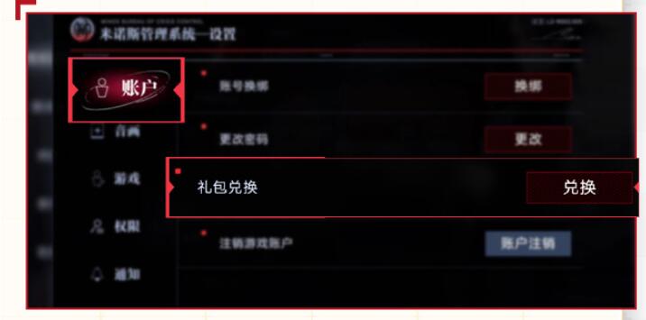 虚拟权益每个游戏账号仅限兑换3次。详细兑换规则见券说明。礼包兑换码在wow会员卡包中显示的期限为自收武之日起至2023年9月20日23:59分,消及时截图保存。礼包兑换码使用有效期为2023年7月21日10:00起至2023年9月120日23:59,用户在礼包兑换码有效期内,登录(无期迷途》,在游戏主界画点击【局长信息】-【设置】-[账户】.】