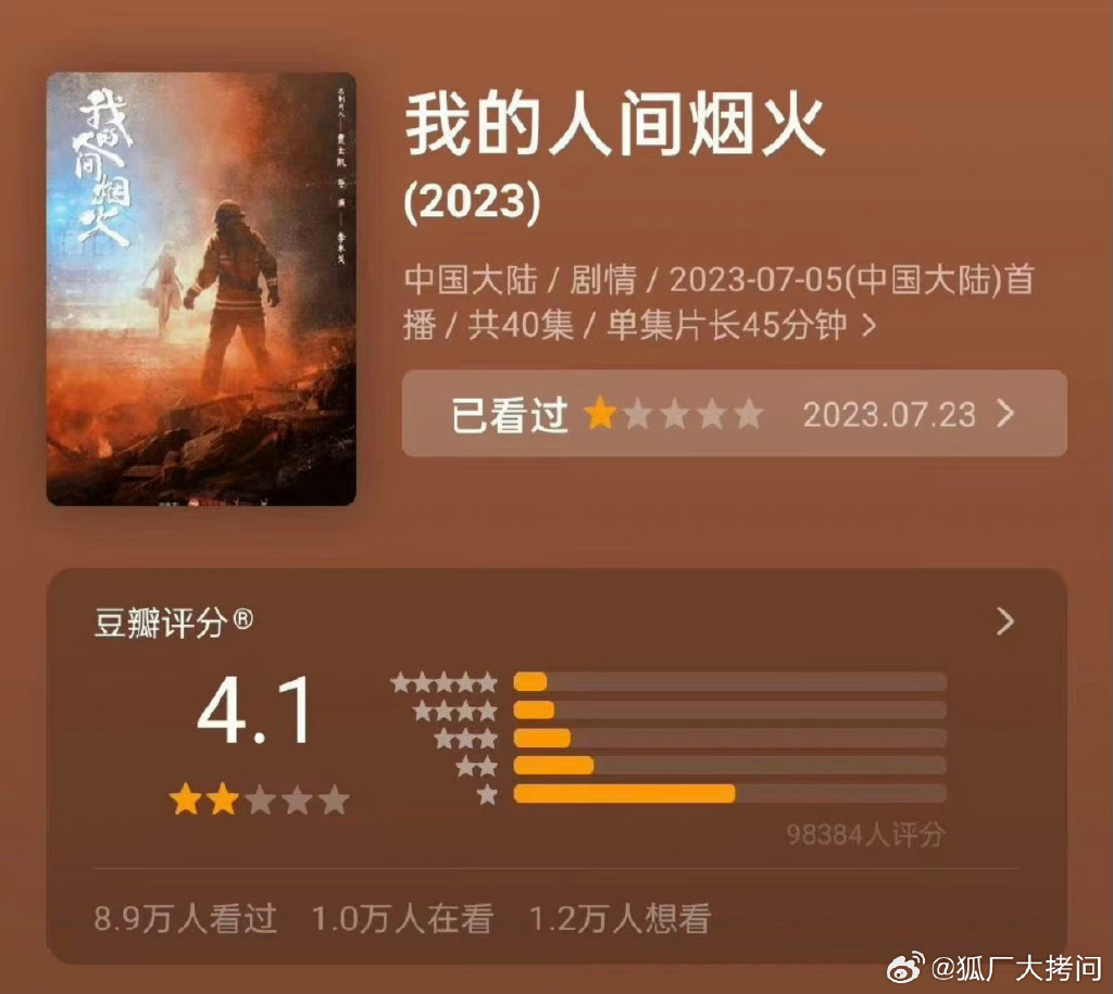 2023-07-23 我的人间烟火豆瓣评分多少 电视剧我的人间烟火豆瓣评分