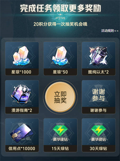 完成收听歌曲,关注崩坏星穹铁道官方账号,发表十五字以上的歌曲评论,分享活动页面可以获得抽奖次数,抽奖至高可以获得一千的星穹。