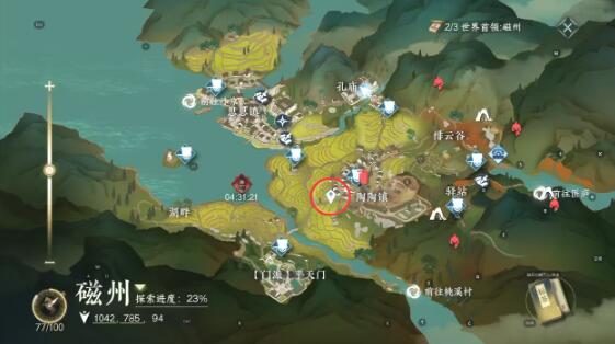 获得道具奇石再到绯云谷右边的瀑布左上角(421,726)使用最终获得一件装备和线索八。