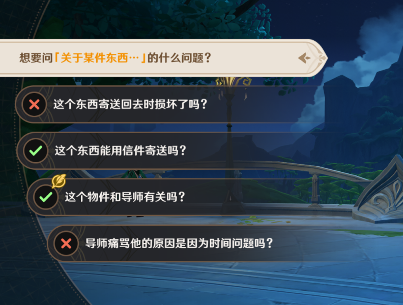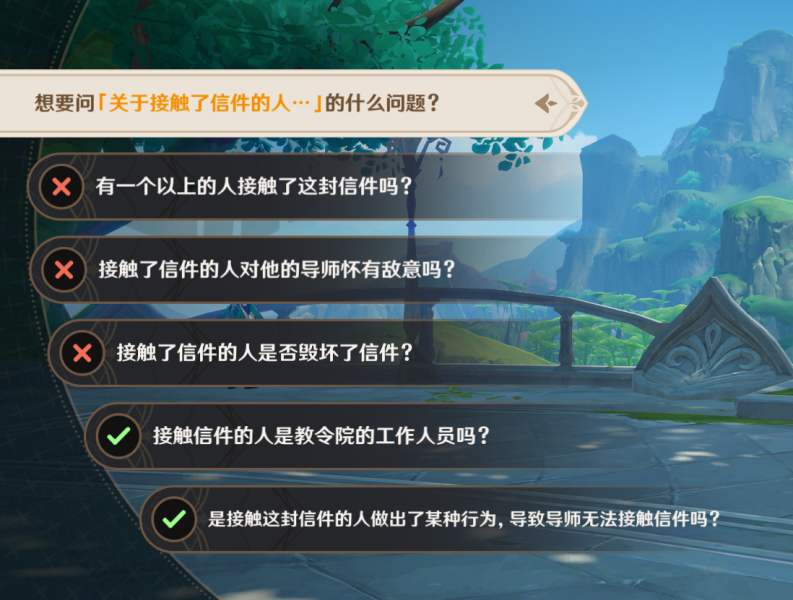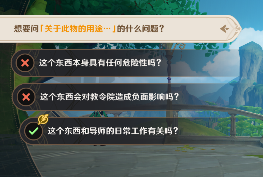从以上提问我们可以得到『这个物件是导师急需的东西』『导师几乎每天都用到它』『缺少信件中的东西,导师就无法正常开始工作』『这个东西的所在位置和它本身有关』『接触信件的人是教令院的工作人员』等这些信息,由此我们可以推断出: