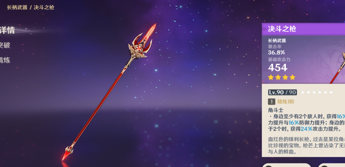 以上就是关于原神决斗之枪武器图鉴介绍的全部内容了,希望能为各位玩家们带来帮助,想要了解更多游戏攻略及资讯请持续关注多特游戏。