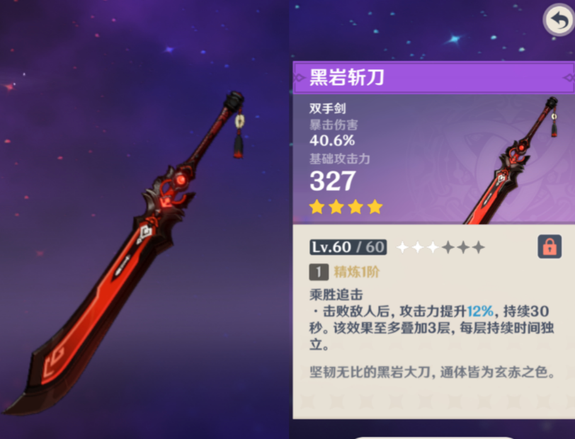 以上就是关于原神黑岩斩刀武器图鉴介绍的全部内容了,希望能为各位玩家们带来帮助,想要了解更多游戏攻略及资讯请持续关注多特游戏。