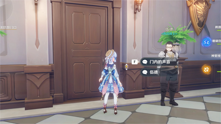 在剧情「骑士团的普通一天」中,在离开琴的办公室之后,先不要离开骑士团,到旁边的禁闭室门口听门内可莉的声音,即可完成该成就。