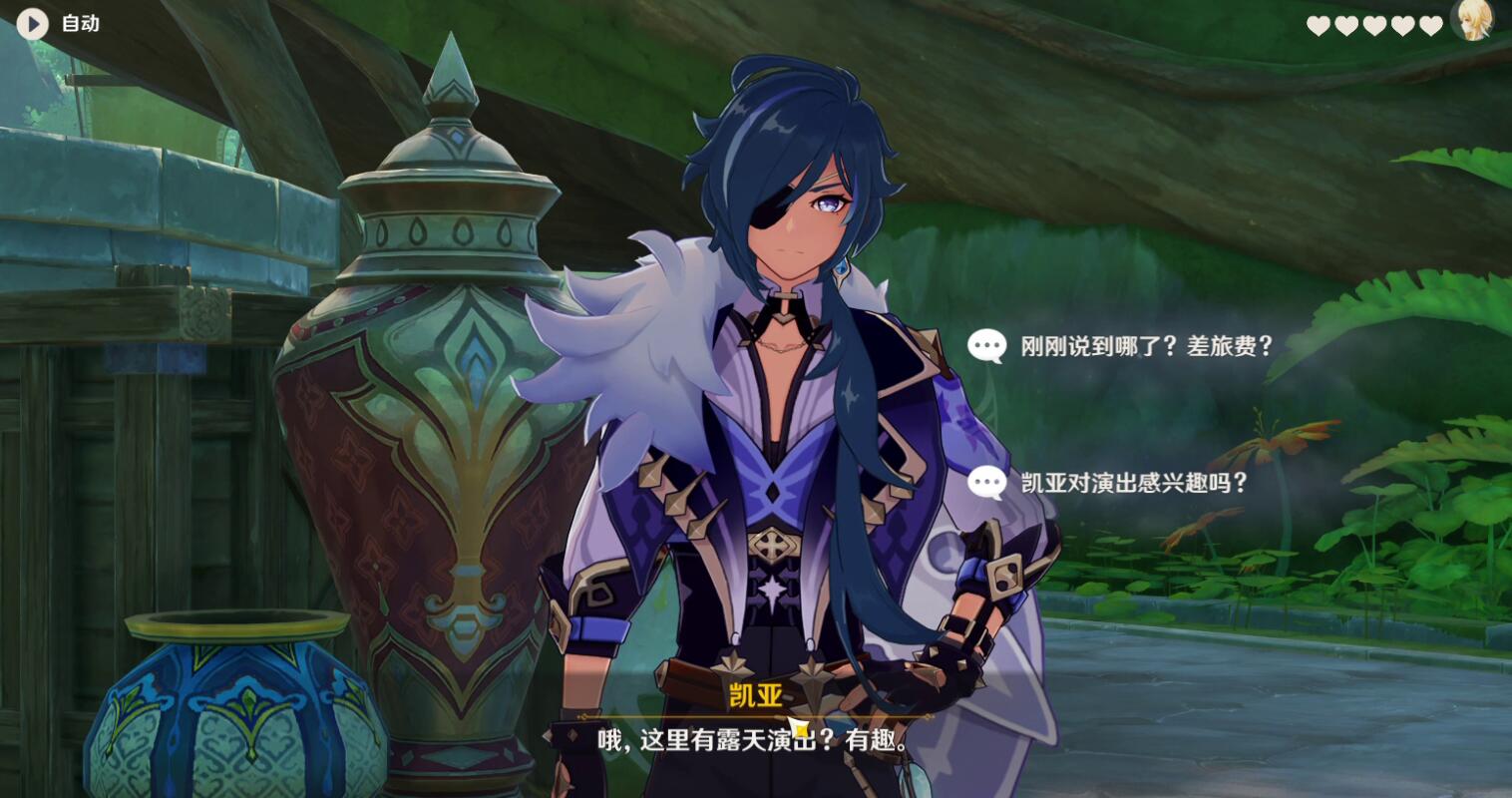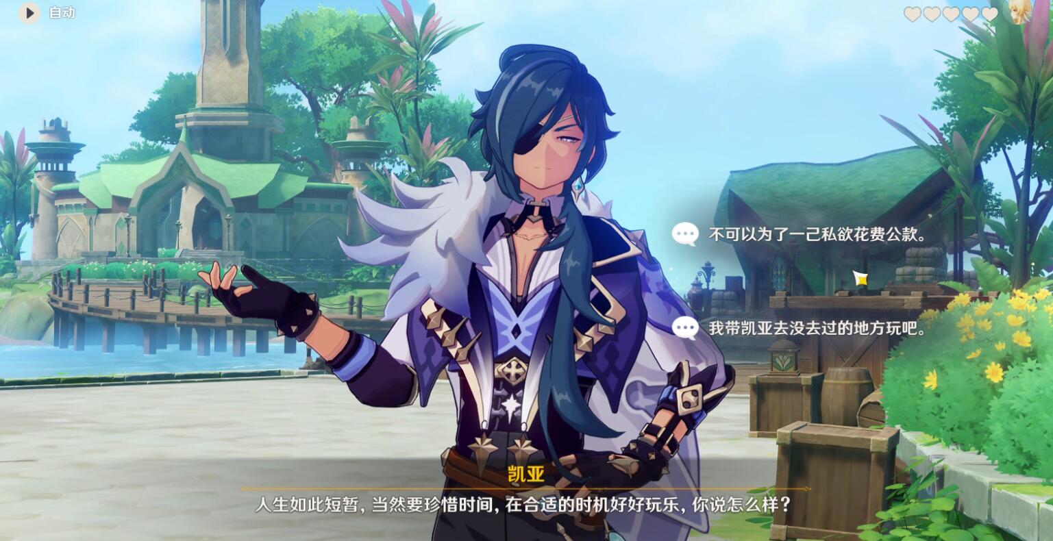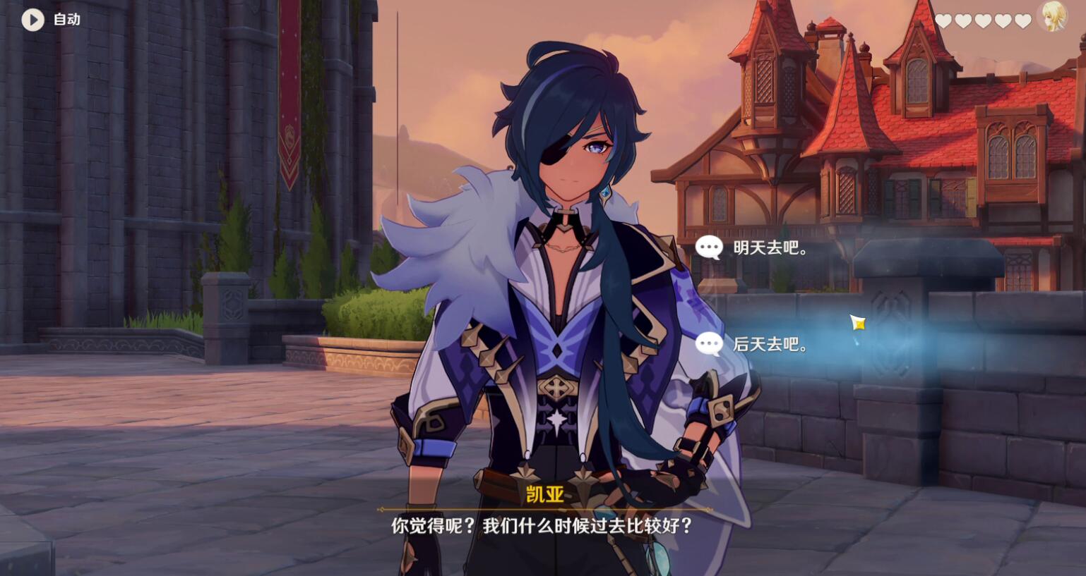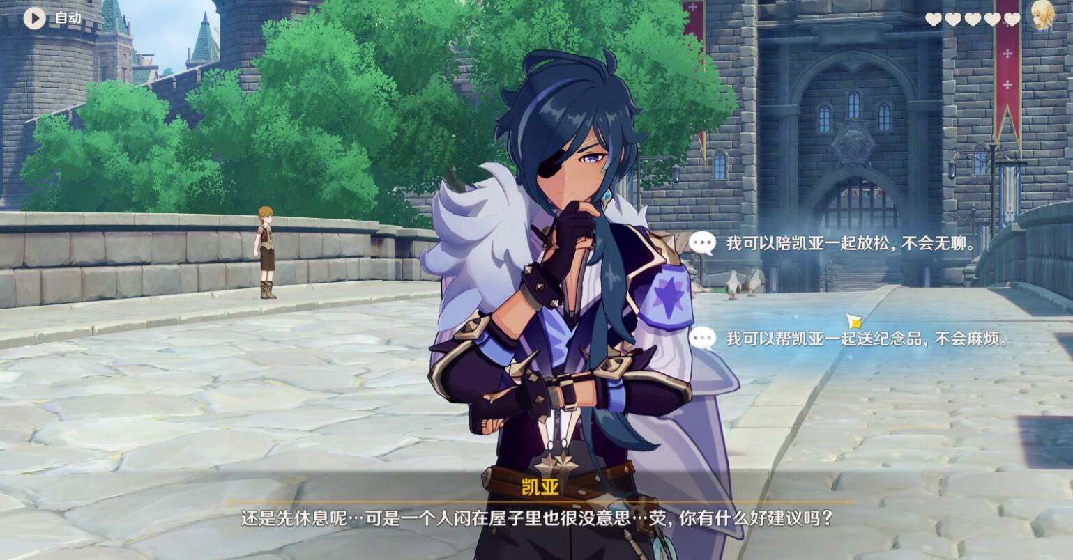 凯亚:还是先休息呢…可是一个人闷在屋子里也很没意思…旅行者,你有什么好建议吗?