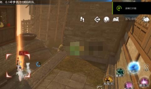 我们需要先老六门前右侧,爬上台阶,沿着右侧台阶走夹角处,这边的坐标:504,198。