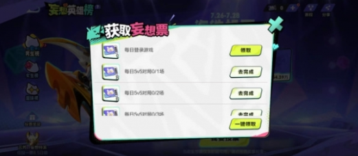 3、弹窗弹出获取妄想投票窗口,按照每日任务流程来完成任务哦。