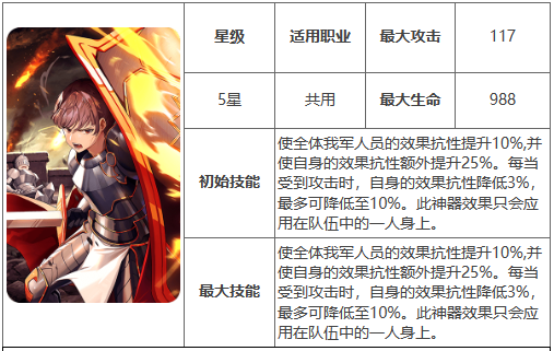 神器背景:“如果战场上蔓延着失败的气息,士兵们就会士气低落,屈服于敌人。这时,举起这块盾牌来守护大家吧。对于陷入挫折的他们来说,这就是向着胜利反击的象征。”