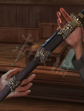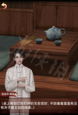 22. 来到二楼房间处,调查茶几左侧坐垫,根据之前的纸条线索,使用获得的铜钱,解开机关获得霸王剑,本章结束