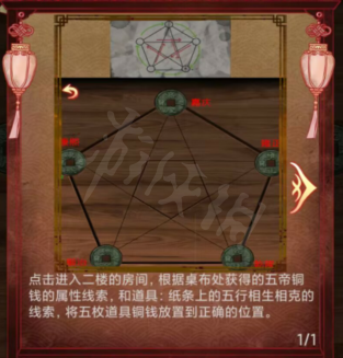 17. 回到一楼最左侧的房间,调查地板使用铜剪,获得铜钱