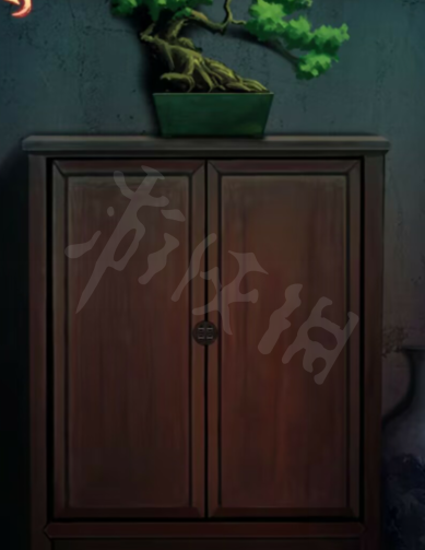 11. 回到初始场景,中间的柜子根据之前手电筒获得的提示打开,注意柜子机关是横着的,打开获得托盘