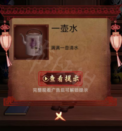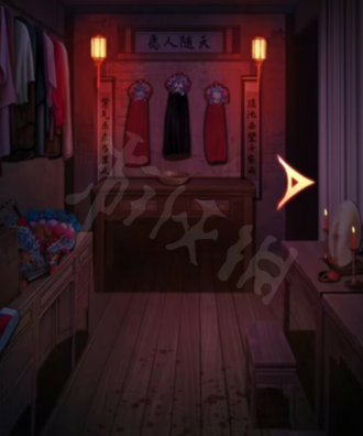 12. 进入初始场景右边的房间,点击桌上的白面具,获得解谜提示