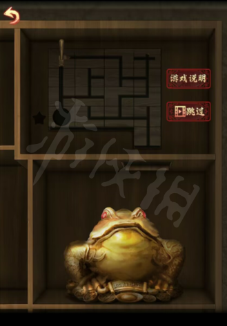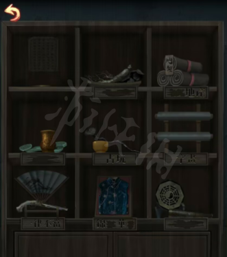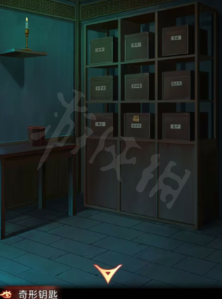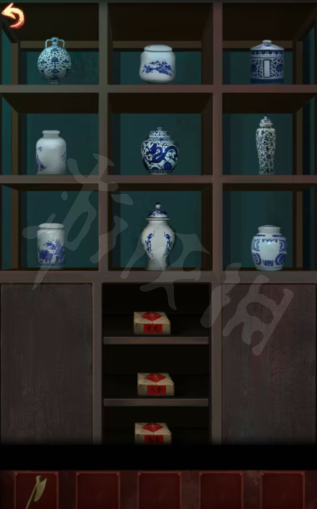 22. 回到伙计处前往北房,用钥匙开门,根据桌上提示摆放柜子上的罐子,机关打开获得虎骨