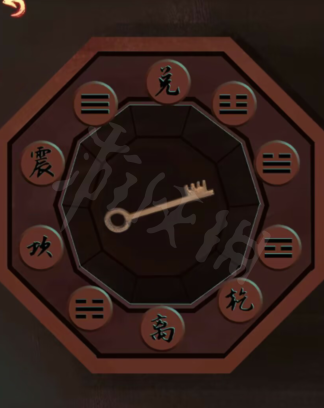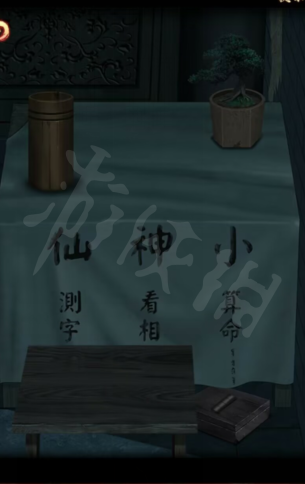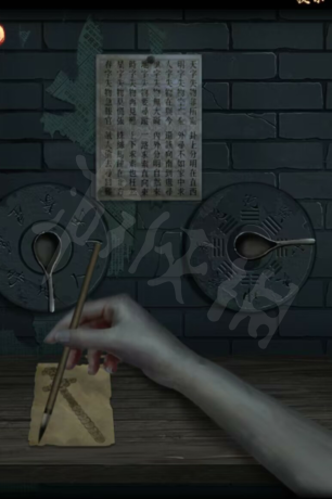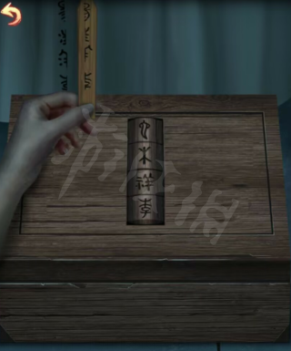 2. 调查下方的密码盒,对着左上的符号使用卦签获得密码提示,打开盒子,获得鲁班尺