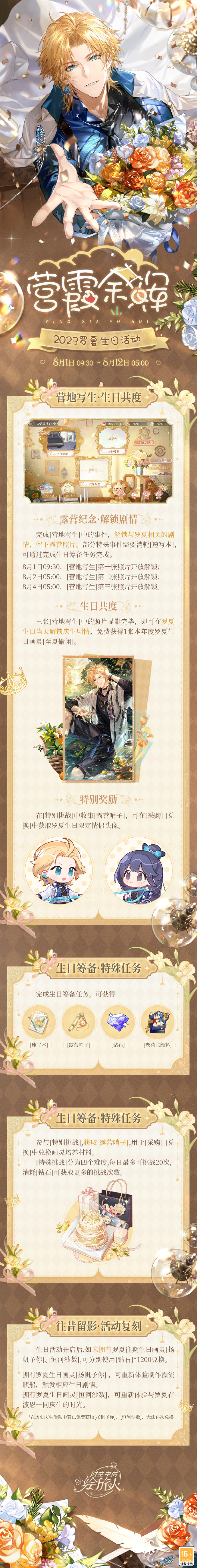 2023-08-01 时空中的绘旅人罗夏生日活动有什么 绘旅人营霞余晖生日活动一览