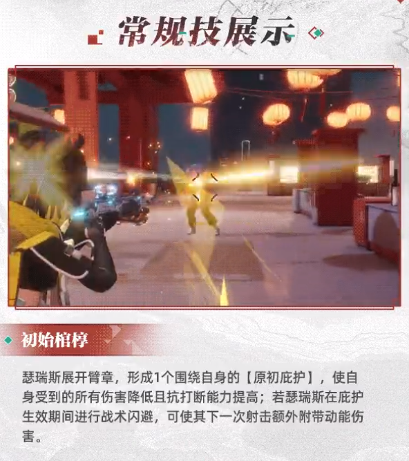 瑟瑞斯展开【生序之穹】保护自己并击退周围敌方目标,使被保护者的移动速度提升,受到的伤害降低,且抗打断能力提高。