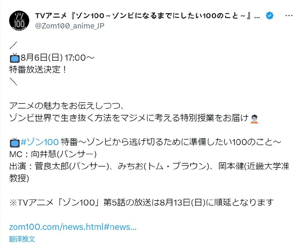 2023-08-05 僵尸百分百第5话延期怎么回事 僵尸百分百第5集什么时候出