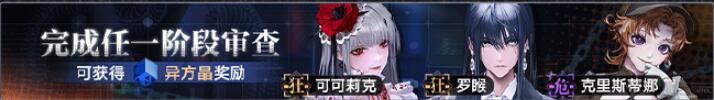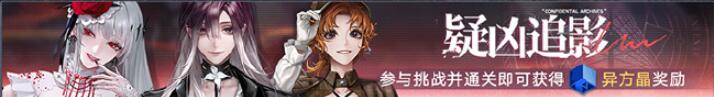 活动说明:活动期间新增狂厄级禁闭者【瑟琳】【可可莉克】、高危级禁闭者【克里斯蒂娜】疑凶追影试炼行动,参与挑战并通关即可获得异方晶奖励。