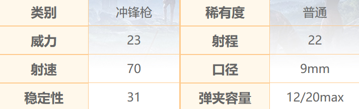 缺点单发威力较低,有效射程较近,远距离伤害低,基础载弹量略低。
