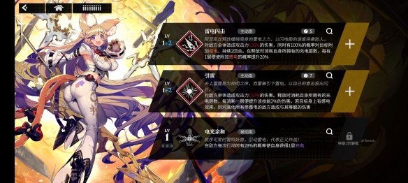 觉醒Lv.1:技能【电光亲和】我方行动时,也有概率获得充电,饰品【雷兽之尾】觉醒等级提升。