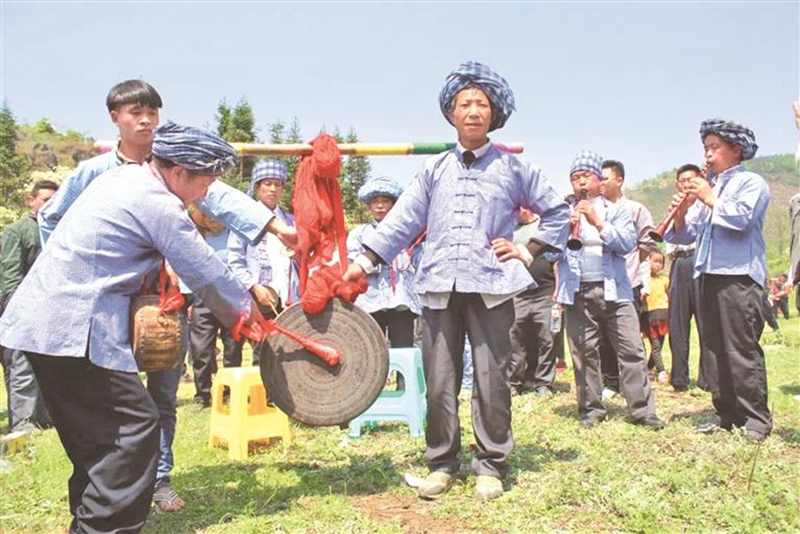 铜鼓是布依族非常古老的乐器,由青铜铸造而成,既是礼器也是乐器,被视为象征身份和历史的“神器”。