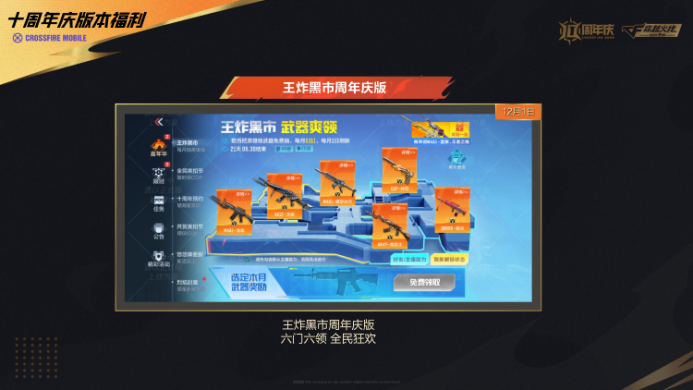 十周年版本福利还有经典飞行棋更新——MG36-魔礼青;冰川守护者公益武器皮肤COP 357-冰川守护;王炸黑市周年狂欢——六门全领,福利我全都要!另外,十周年钥匙、钻石、庆典登录礼等丰厚奖励领到手软!
