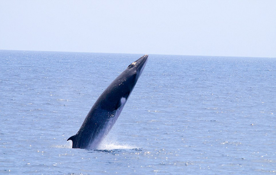 须鲸属于鲸类中的一种,它们的喷气孔有两个,就像人类的鼻孔一样对称分布;