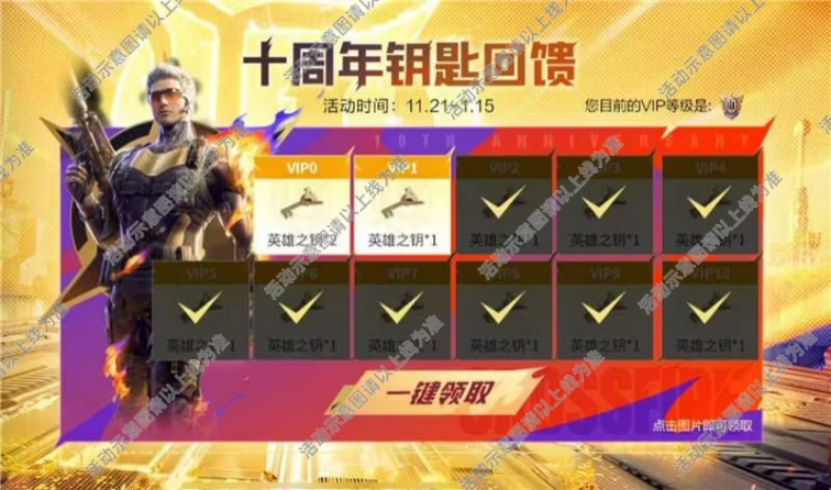 无论是VIP白嫖还是钻石补购,这波钥匙福利都堪称十周年开胃菜。记得定好闹钟,11月21日准时上线领钥匙,把高价值道具收入囊中!
